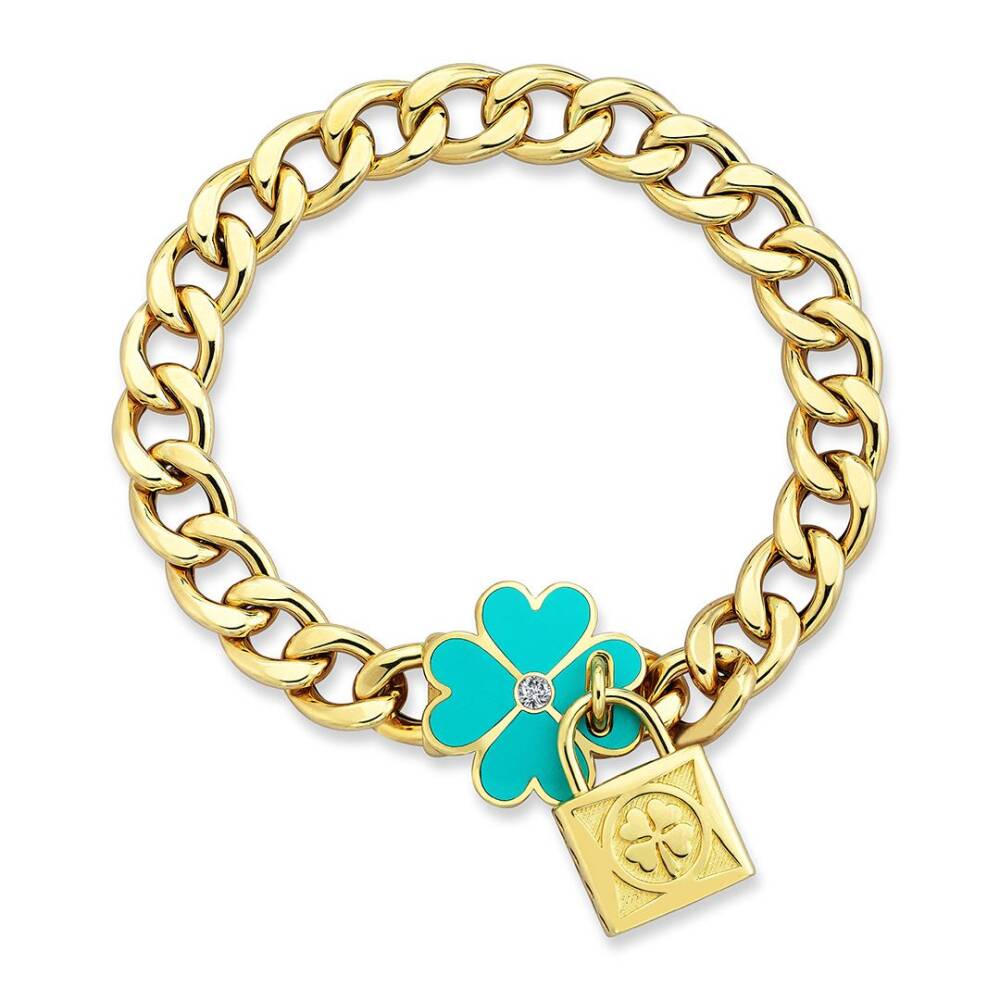 Cetaş Açılır-Kapanır Turkuaz Mineli Yonca Kilitli Dilek Bilekliği