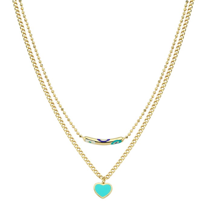 Cetaş Fortuna Turkuaz Mineli Altın Kalp Kolye