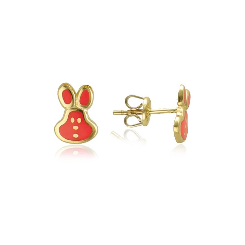 Cetaş Kırmızı Mineli Tavşan Altın Çocuk Küpe - 1