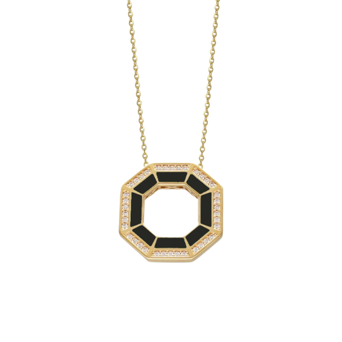Cetaş Minima Siyah Mineli Altın Geometrik Kolye - 1