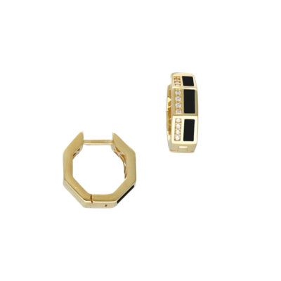 Cetaş Minima Siyah Mineli Altın Geometrik Küpe