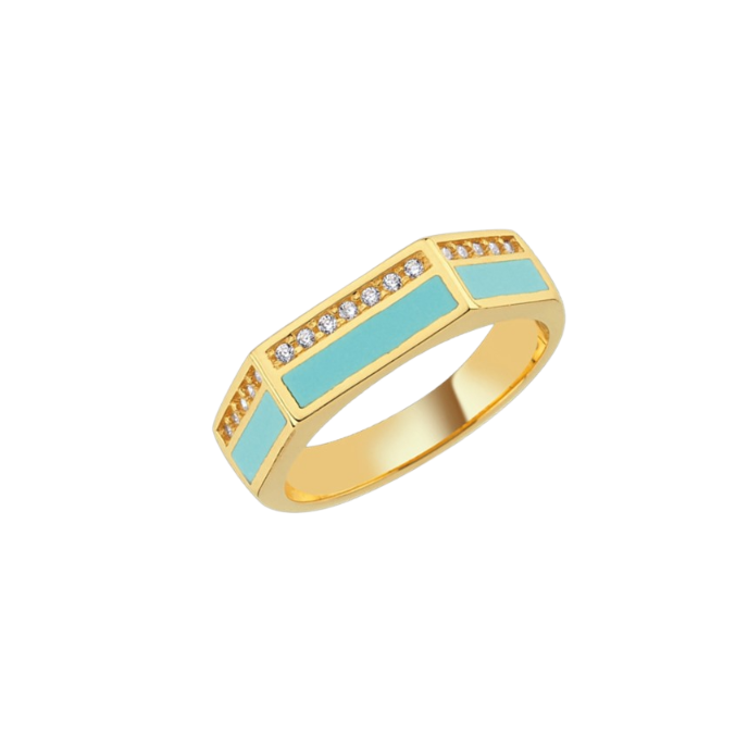 Cetaş Minima Turkuaz Mineli Altın Geometrik Yüzük
