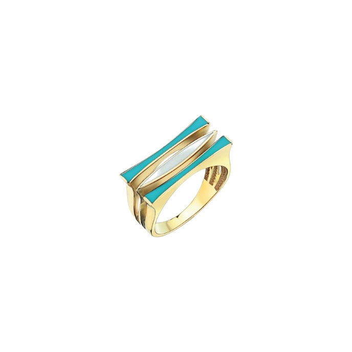 Cetaş Minima Turkuaz-Beyaz Mineli Parelel Altın Yüzük - 1