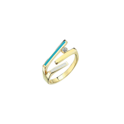 Cetaş Minima Turkuaz-Beyaz Mineli Taşlı Altın Yüzük