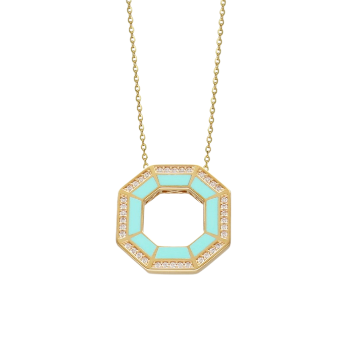Cetaş Minima Turkuaz Mineli Altın Geometrik Kolye