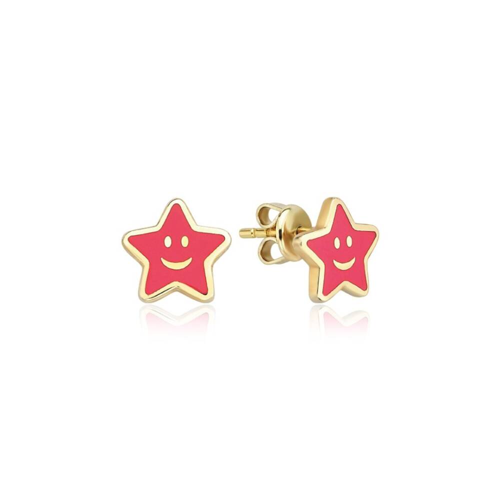 Cetaş Pembe Mineli Yıldız Çocuk Altın Küpe - 1