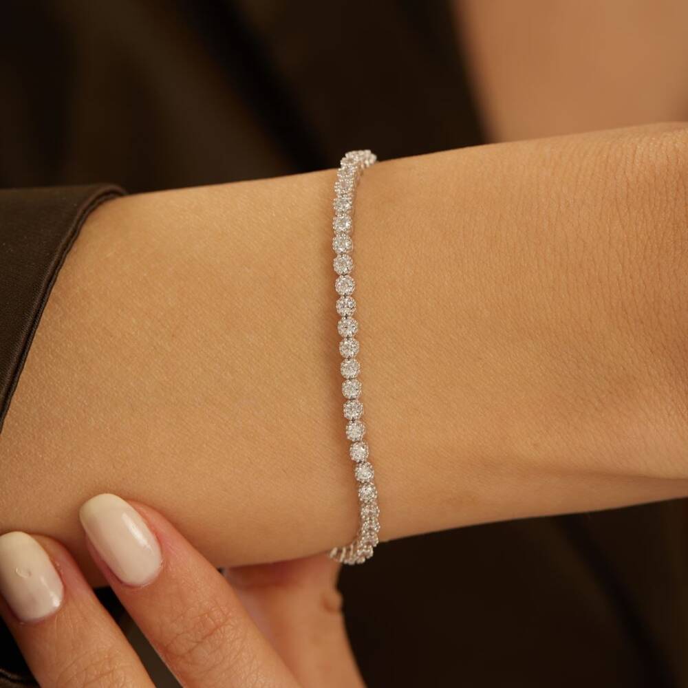 Çiçek Model Su Yolu Beyaz Altın Bileklik - 1