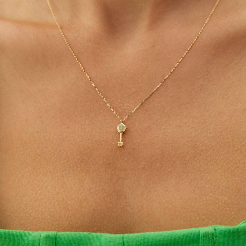 Çiçekli Anahtar Minimal Altın Kolye - 2