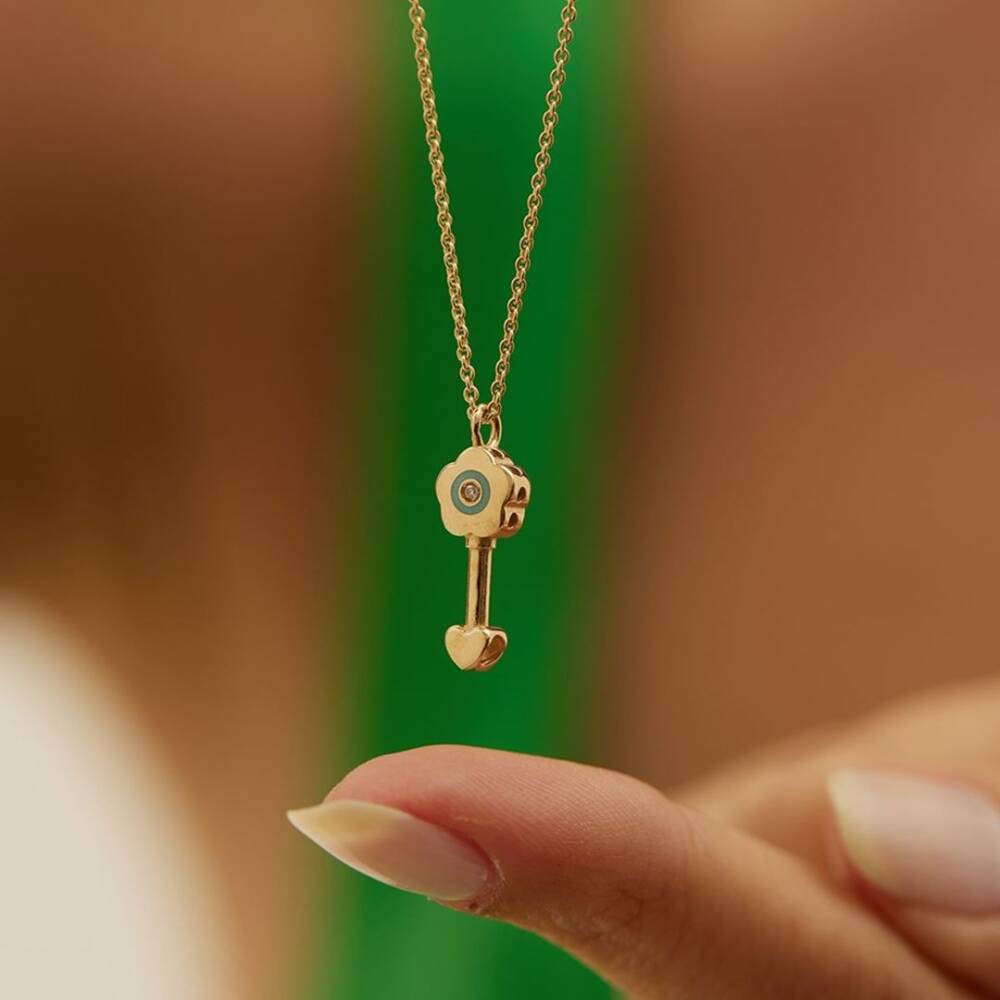 Çiçekli Anahtar Minimal Altın Kolye - 1