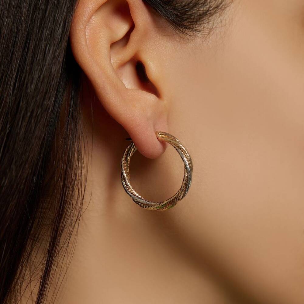 Çift Renk Burma Halka Altın Küpe - 1