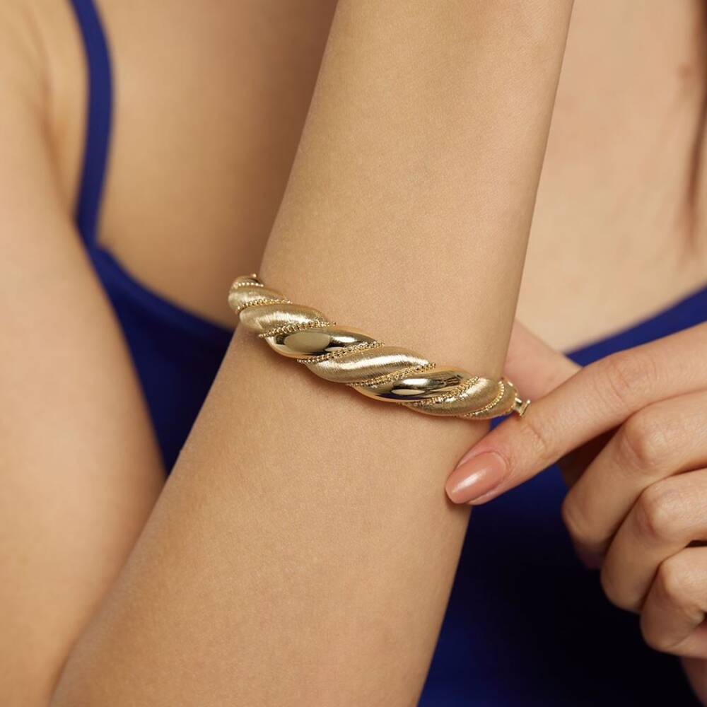 Çizgili Burgu Model Altın Tasarım Kelepçe Bilezik - 1
