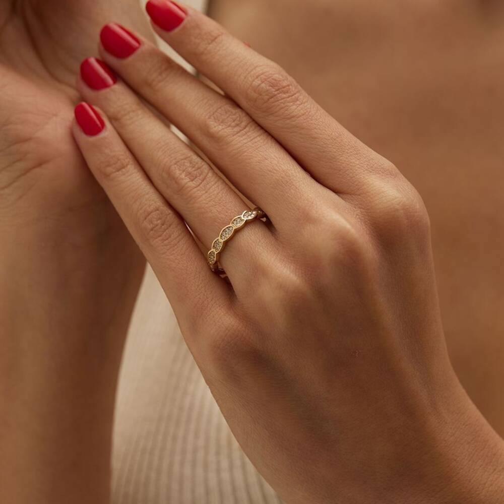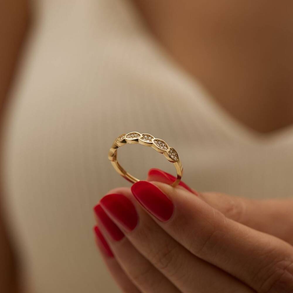 Çoklu Oval Taşlı Altın Yüzük