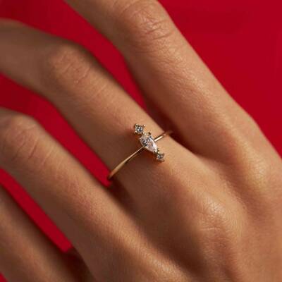 Damla Baget Taşlı Minimal Altın Yüzük - 1