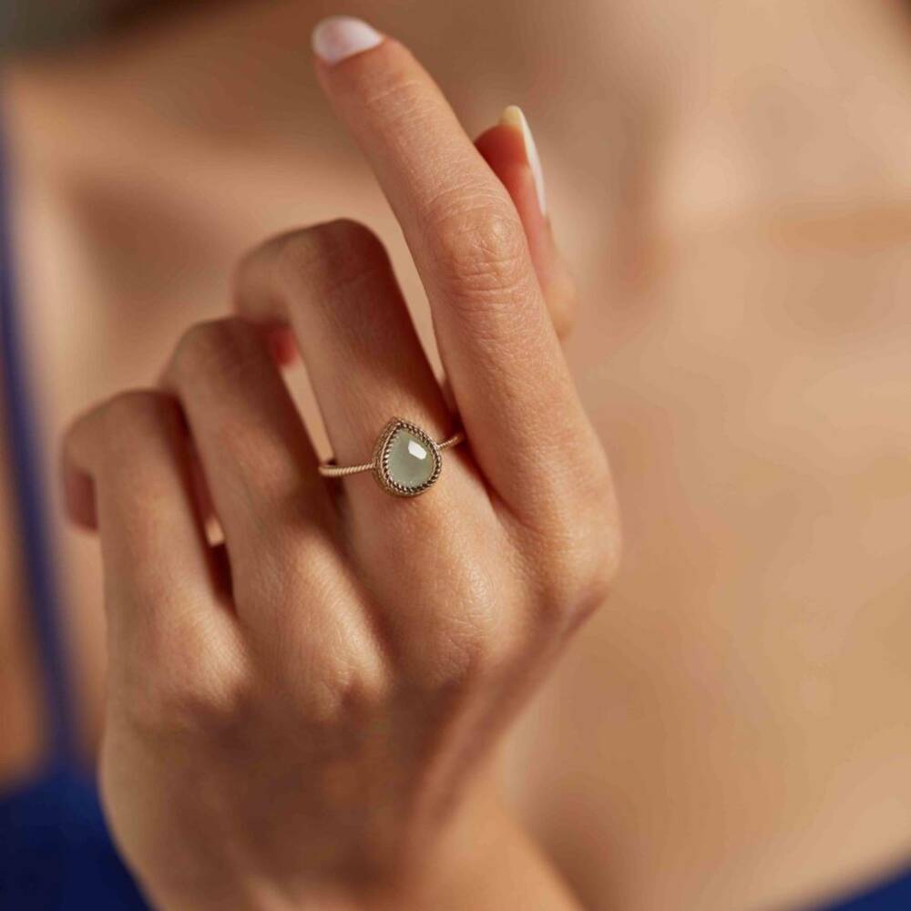 Desenli Mint Yeşili Damla Baget Altın Yüzük