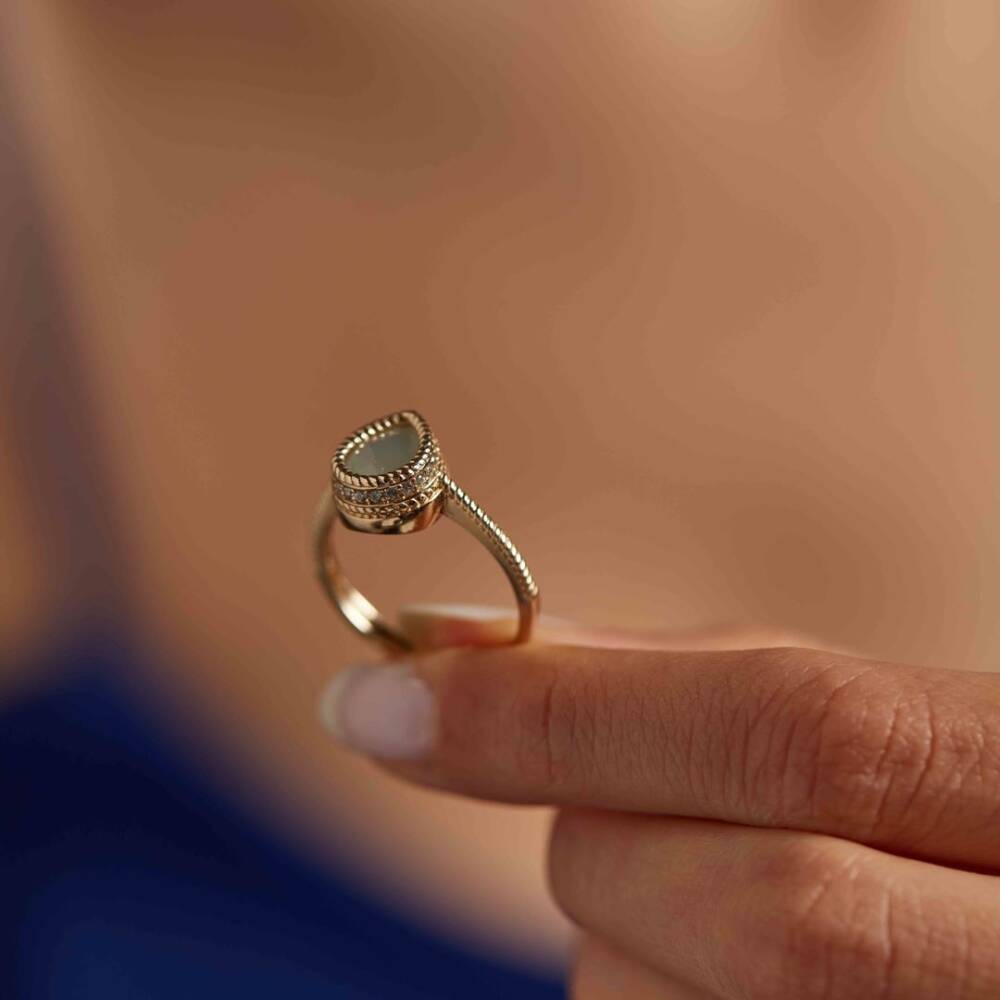 Desenli Mint Yeşili Damla Baget Altın Yüzük - 1