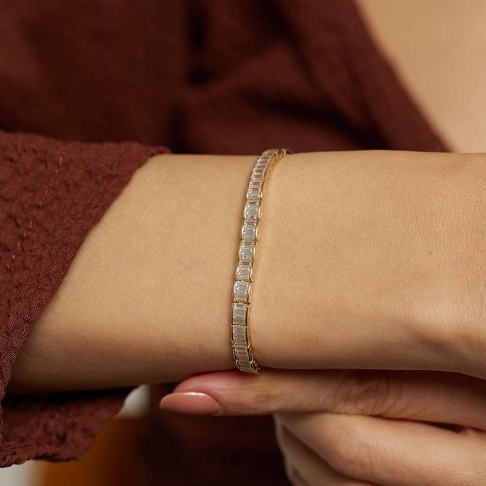 Dikdörtgen Baget Taşlı Altın Bileklik - 1