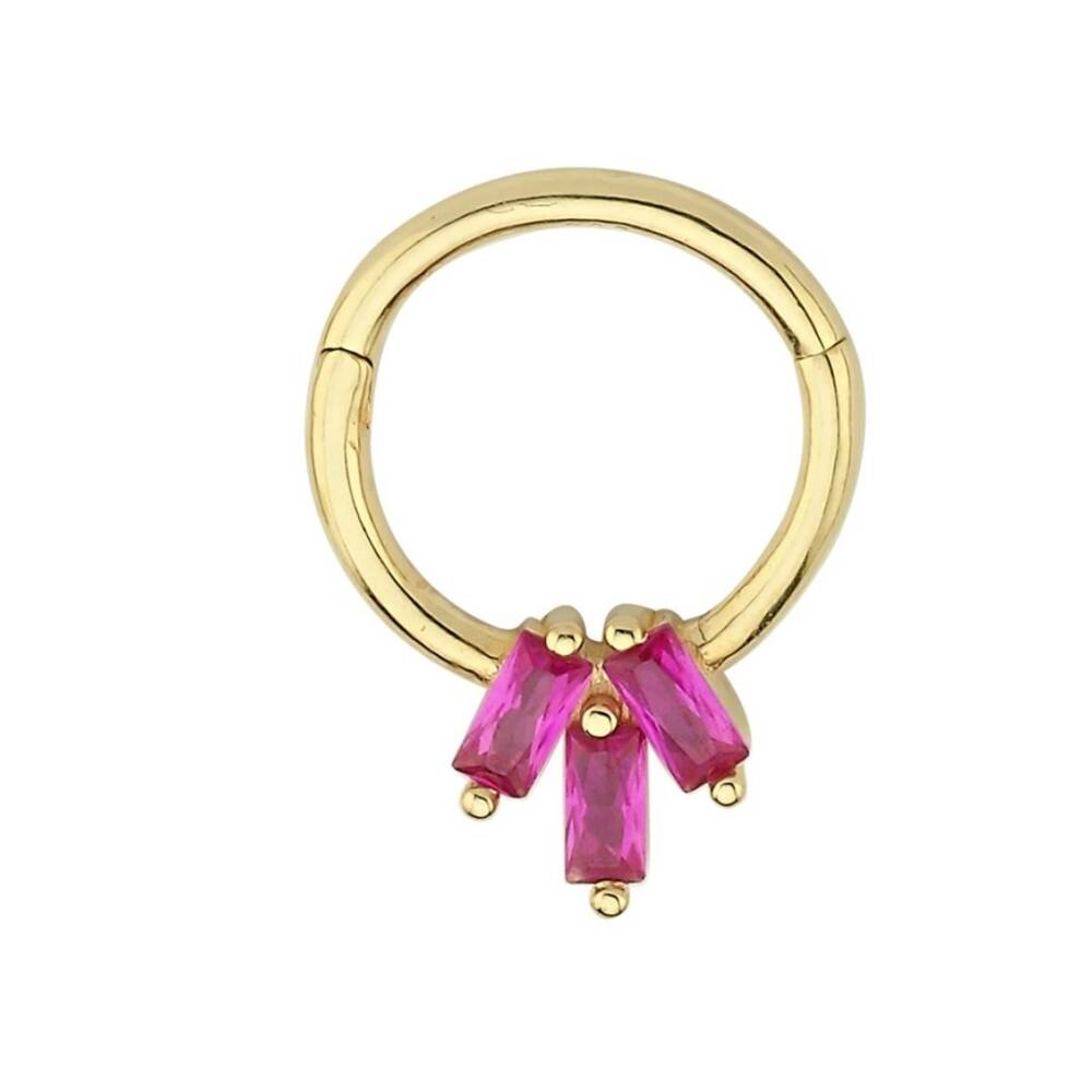 Dikdörtgen Pembe Taşlı Altın Helix Küpe