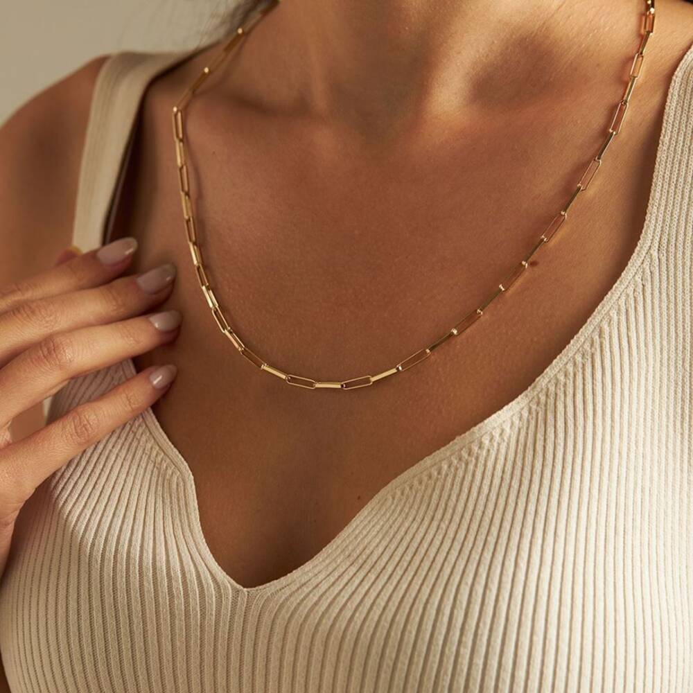 Dikdörtgen Zincir Tasarımlı Altın Kolye 65 Cm