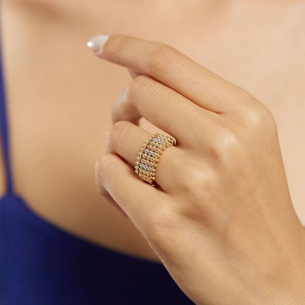 Dört Sıra Dorika Toplu Altın Yüzük - 1