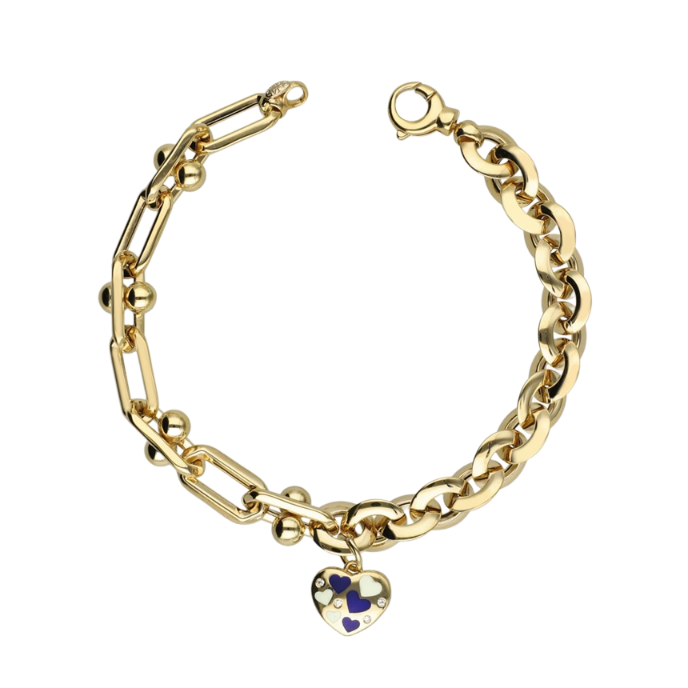 Eterna Lacivert - Beyaz Mineli Cetaş Altın Bileklik
