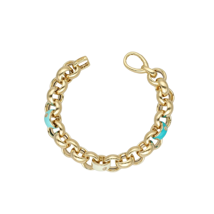 Eterna Mavi-Beyaz Mineli Taşlı Zincir Cetaş Altın Bileklik - 1
