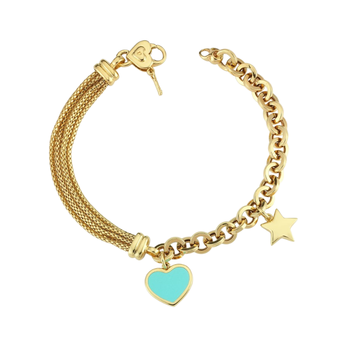 Eterna Mavi Kalpli Ve Yıldız Uçlu Cetaş Altın Bileklik - 1