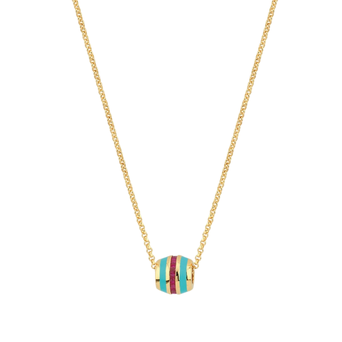 Eterna Mavi Mineli Magenta Taşlı Zincir Cetaş Altın Kolye