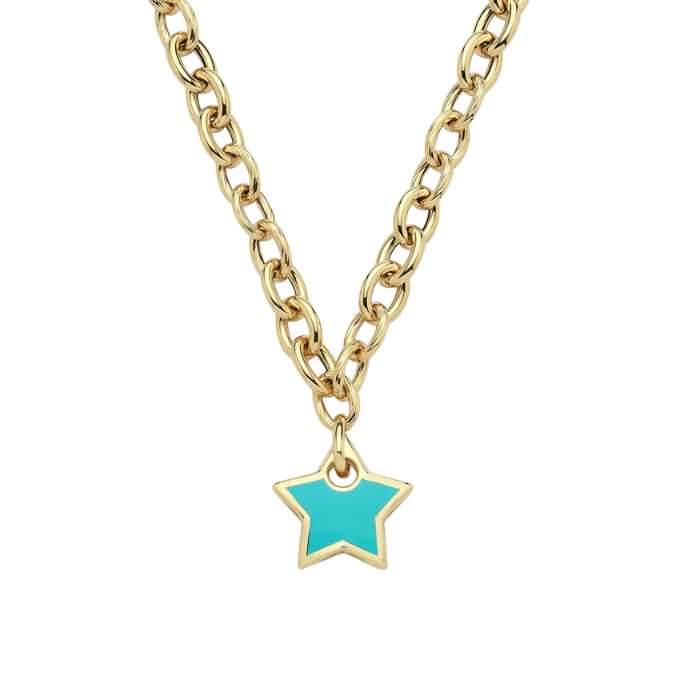 Eterna Mavi Mineli Yıldız Cetaş Altın Kolye