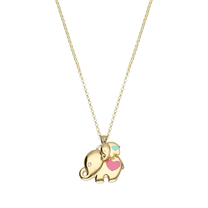 Eterna Pembe-Mavi Mineli Fil Cetaş Altın Kolye