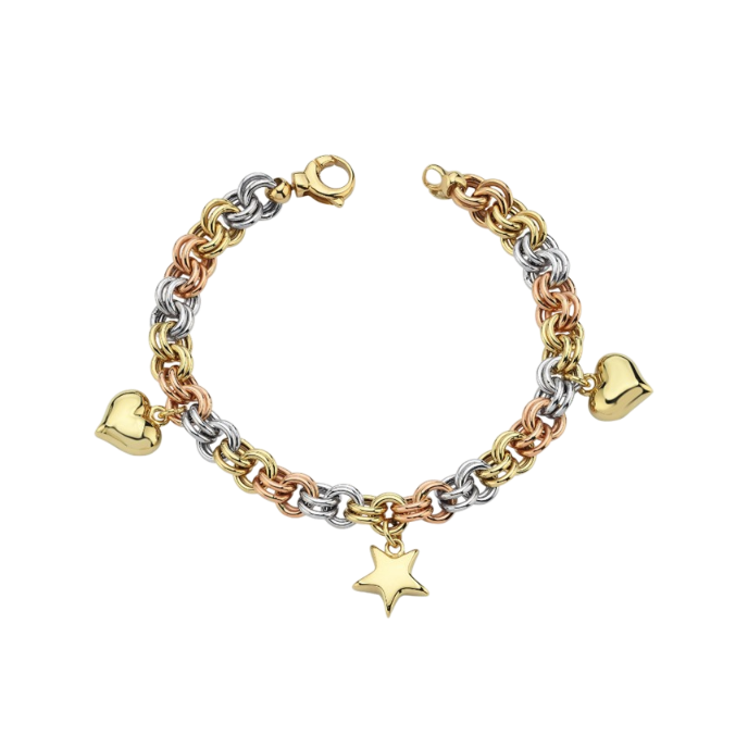 Eterna Sarı-Beyaz-Rose Altın Sallantılı Cetaş Bileklik