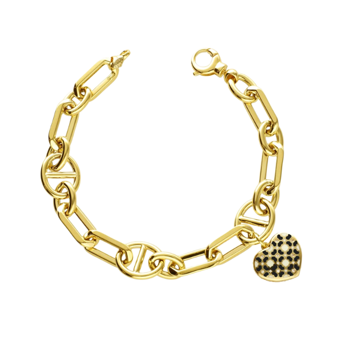 Eterna Siyah Mineli Kalpli Zincir Cetaş Altın Bileklik