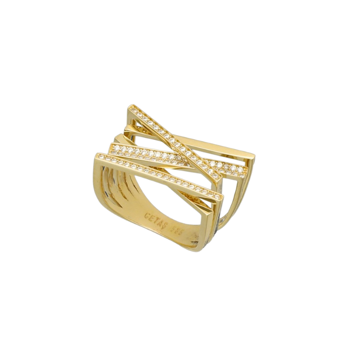 Eterna Taşlı Zikzak Cetaş Altın Yüzük - 1