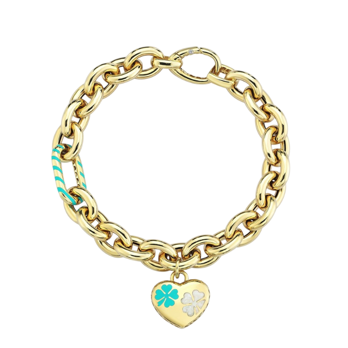 Eterna Turkuaz-Beyaz Mineli Kalpli Cetaş Altın Bileklik - 1