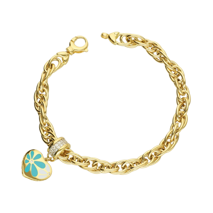 Eterna Turkuaz-Beyaz Mineli Kalpli Taşlı Cetaş Altın Bileklik - 1