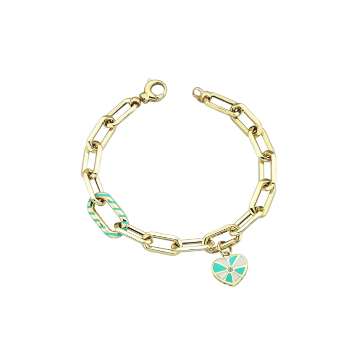 Eterna Turkuaz-Beyaz Mineli Kalpli Zincir Cetaş Altın Bileklik - 1