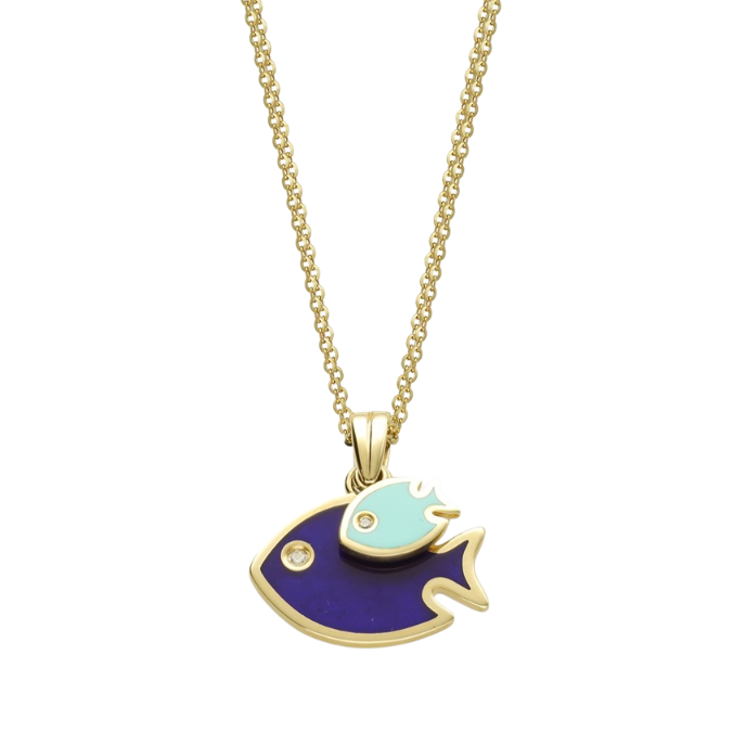 Eterna Turkuaz-Mavi Mineli Balık Cetaş Altın Kolye - 1