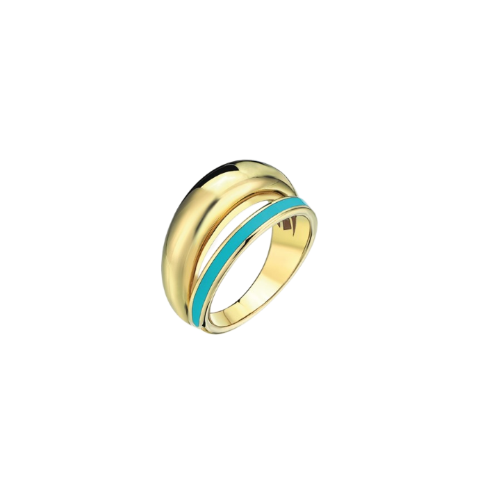 Eterna Turkuaz Mine Çizgili Cetaş Altın Yüzük - 1
