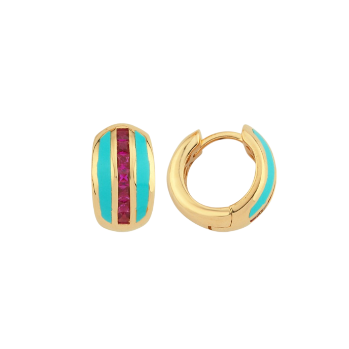 Eterna Turkuaz Mineli Cetaş Altın Küpe - 1