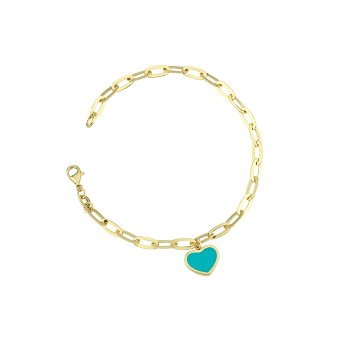 Eterna Turkuaz Mineli Kalp Sallantılı Cetaş Altın Bileklik