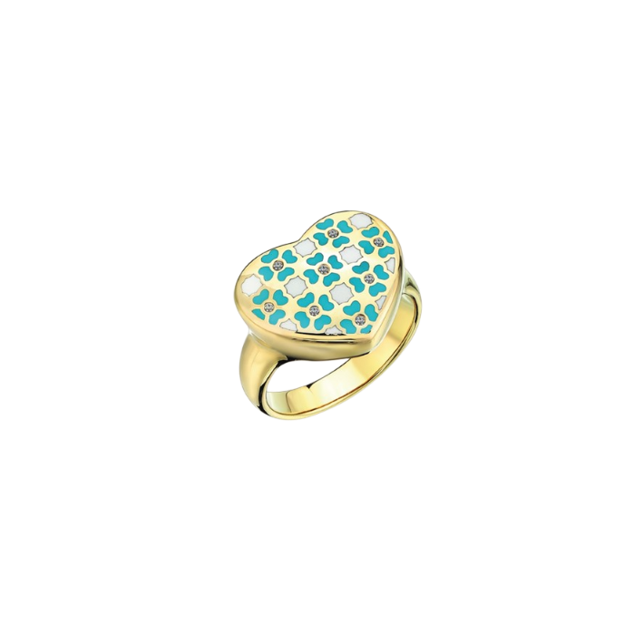 Eterna Turkuaz Mineli Kalpli Cetaş Altın Yüzük