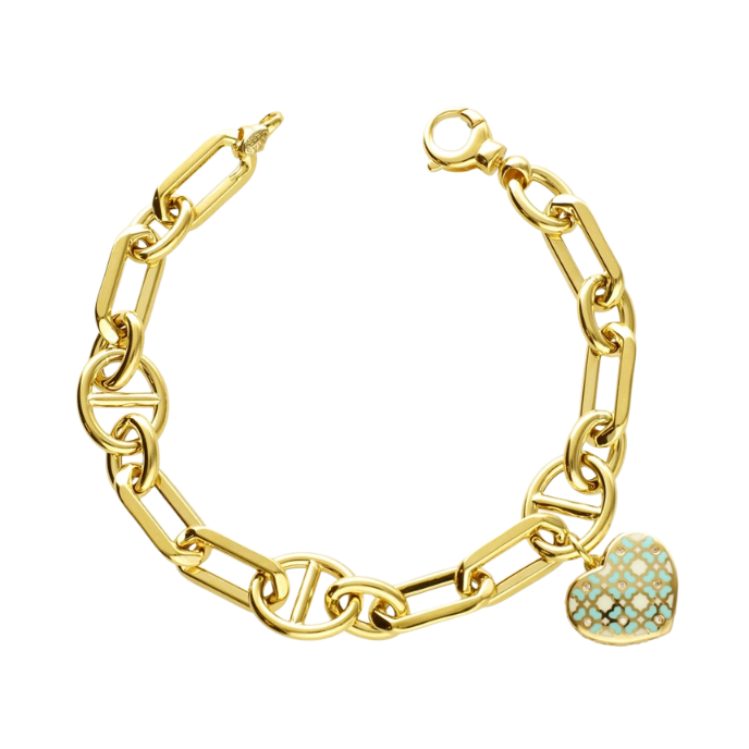 Eterna Turkuaz Mineli Kalpli Zincir Cetaş Altın Bileklik - 1