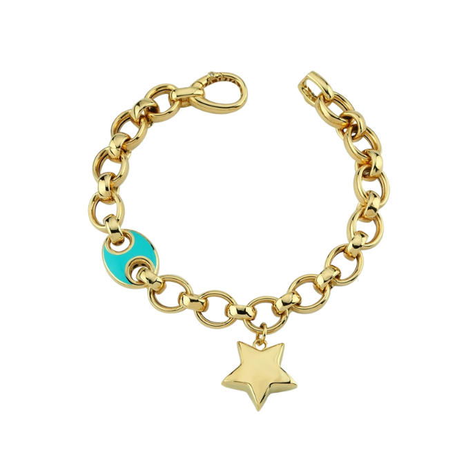 Eterna Turkuaz Mineli Yıldız Cetaş Altın Bileklik