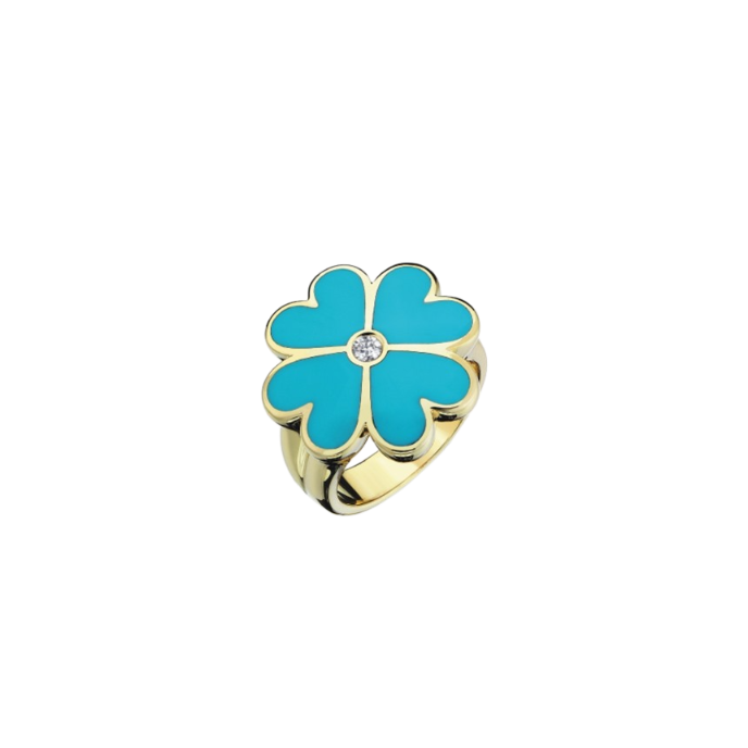 Eterna Turkuaz Mineli Yonca Cetaş Altın Yüzük