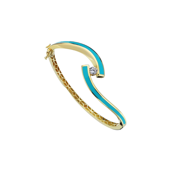Eterna Yin-Yang Turkuaz Mineli Cetaş Altın Kelepçe