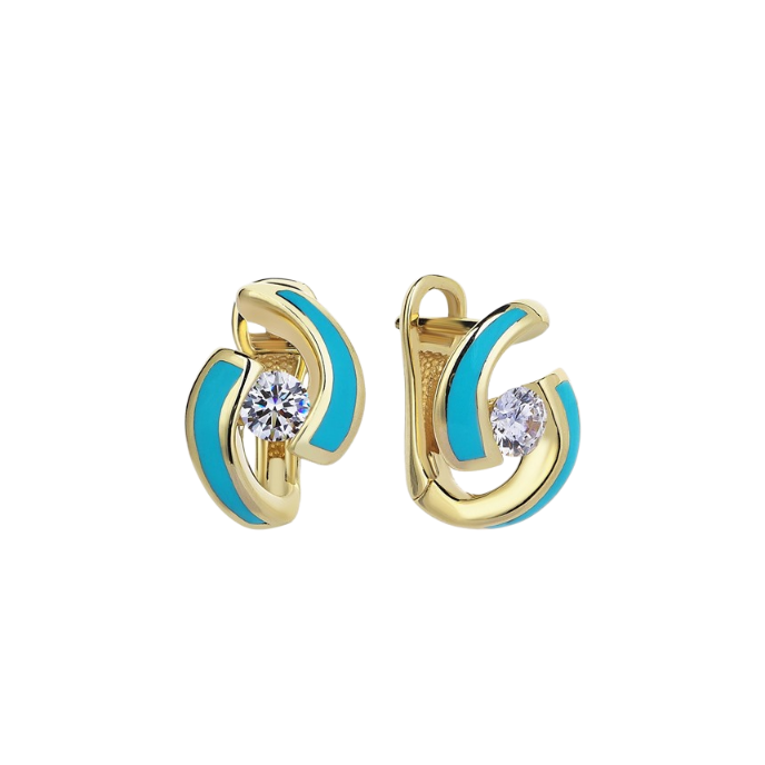Eterna Yin-Yang Turkuaz Mineli Cetaş Altın Küpe - 1