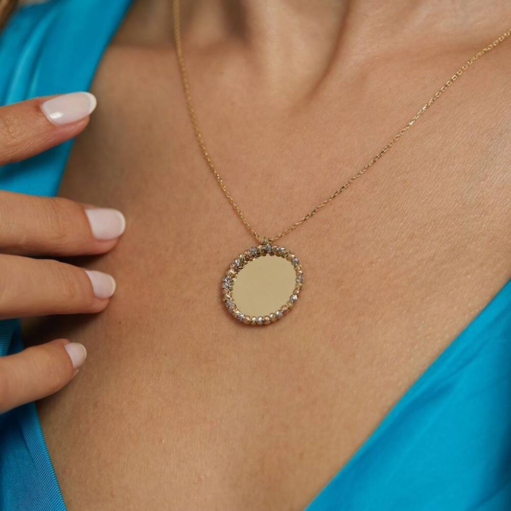 Etrafı Dorika Dizili Plaka Altın Kolye - 2