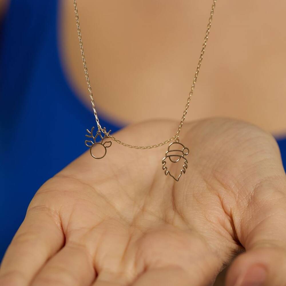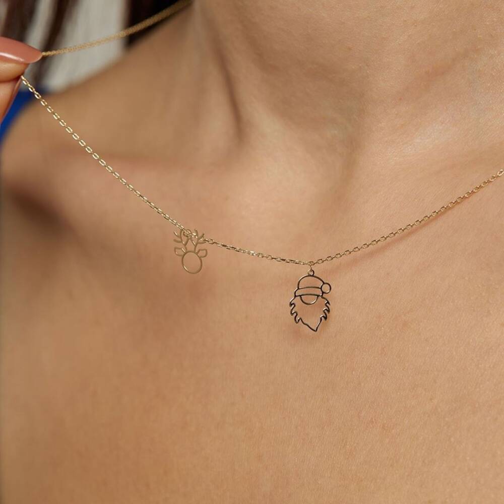 Geyik Ve Noel Baba Sallantılı Altın Kolye - 1