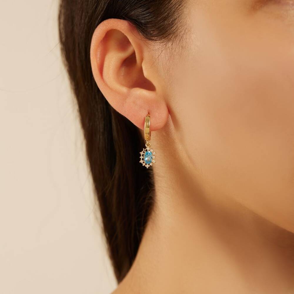 Güneş Motifli Oval Taşlı Altın Küpe - 1