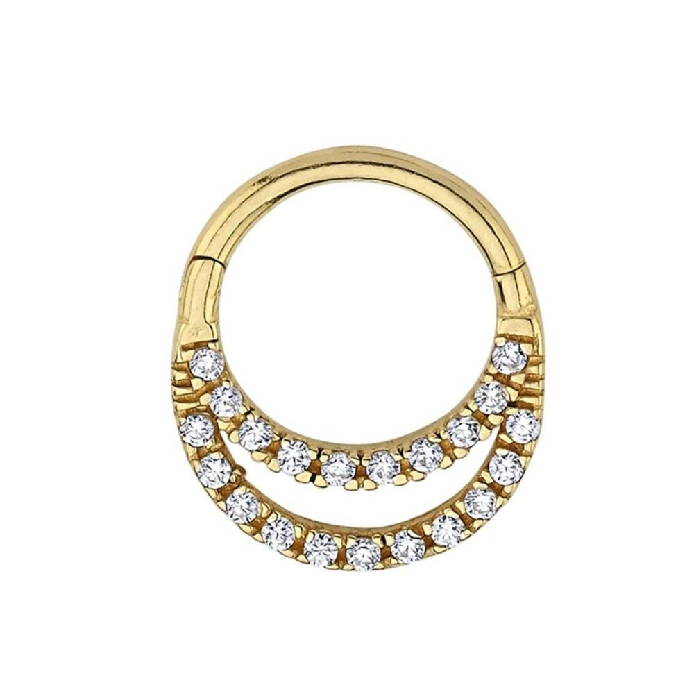 İki Sıra Taş Dizili Altın Helix Küpe - 1