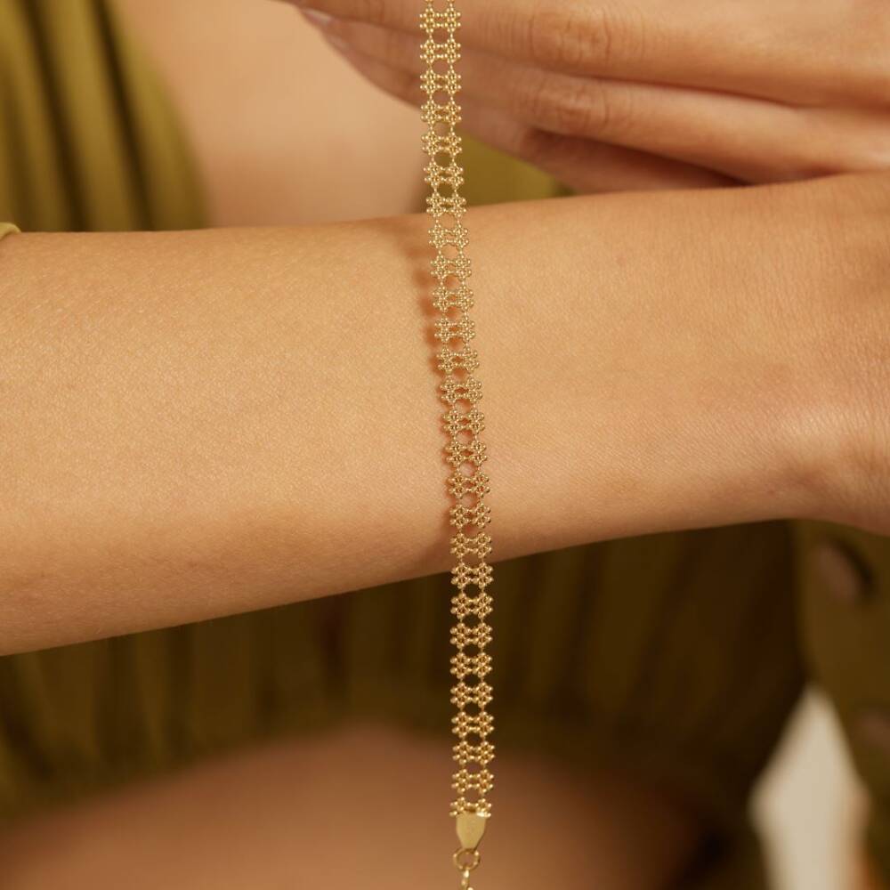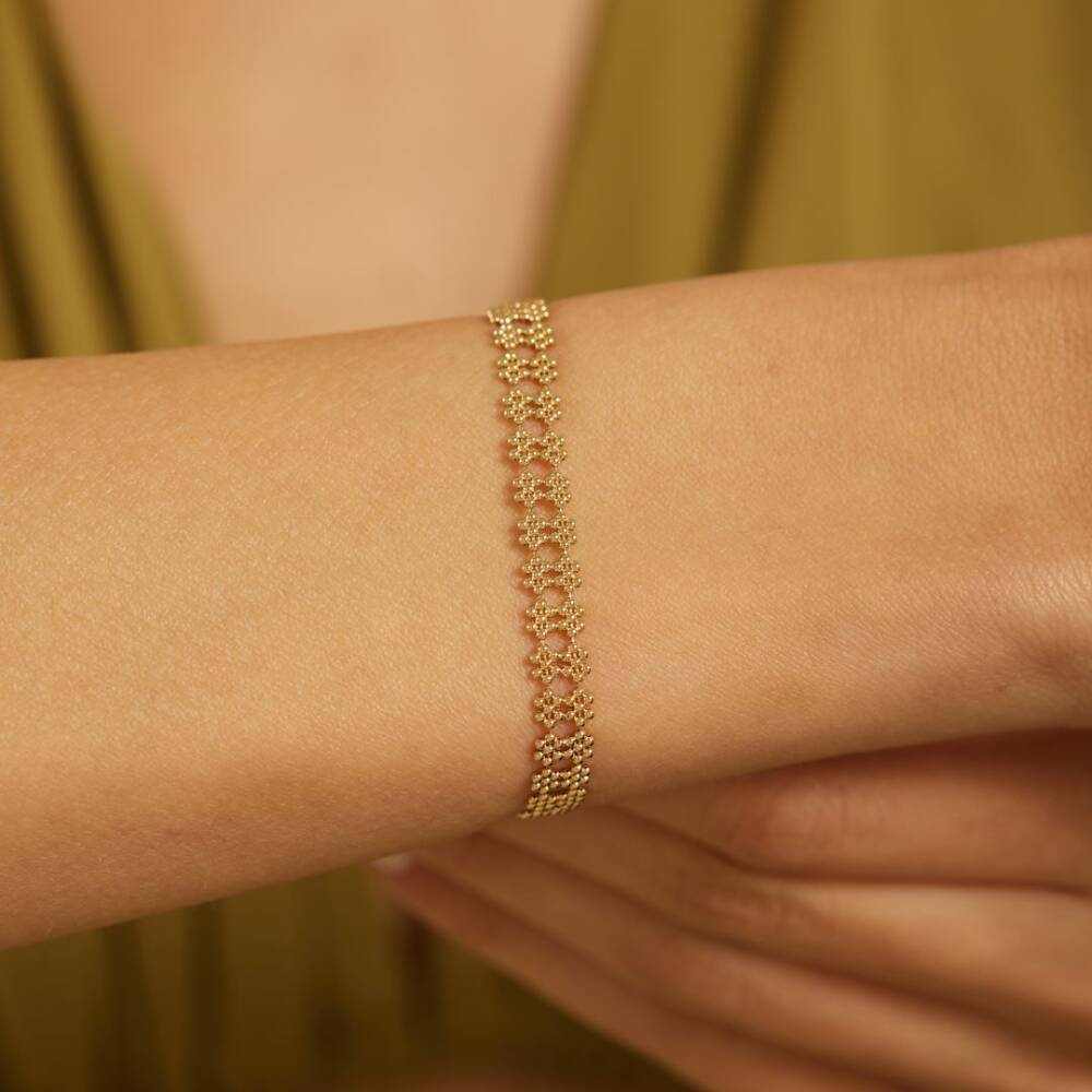 İkili Çiçek Tasarımlı Toplu Altın Bileklik